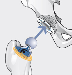 Hierbei werden die krankhaft veränderten Gelenkanteile sowohl im Bereich des Oberschenkelkopfes als auch der Gelenkpfanne ersetzt. Die Prothese selbst ist der menschlichen Natur nachgebildet, sie besteht aus einem Schaft, auf dem ein Kugelkopf aufgesetzt wird, sowie einer Pfanne, in der ein entsprechendes Inlay fixiert wird.