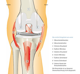 Häufigste Ursache einer Kniegelenkserkrankung ist der krankhafte Verschleiss des Gelenkknorpels (Arthrose), der meistens durch Beinachsenfehlstellungen (X- oder O-Bein), rheumatische und stoffwechselbedingte Erkrankungen sowie Folge von Verletzungen oder anlagebedingten Fehlbildungen verursacht wird.
